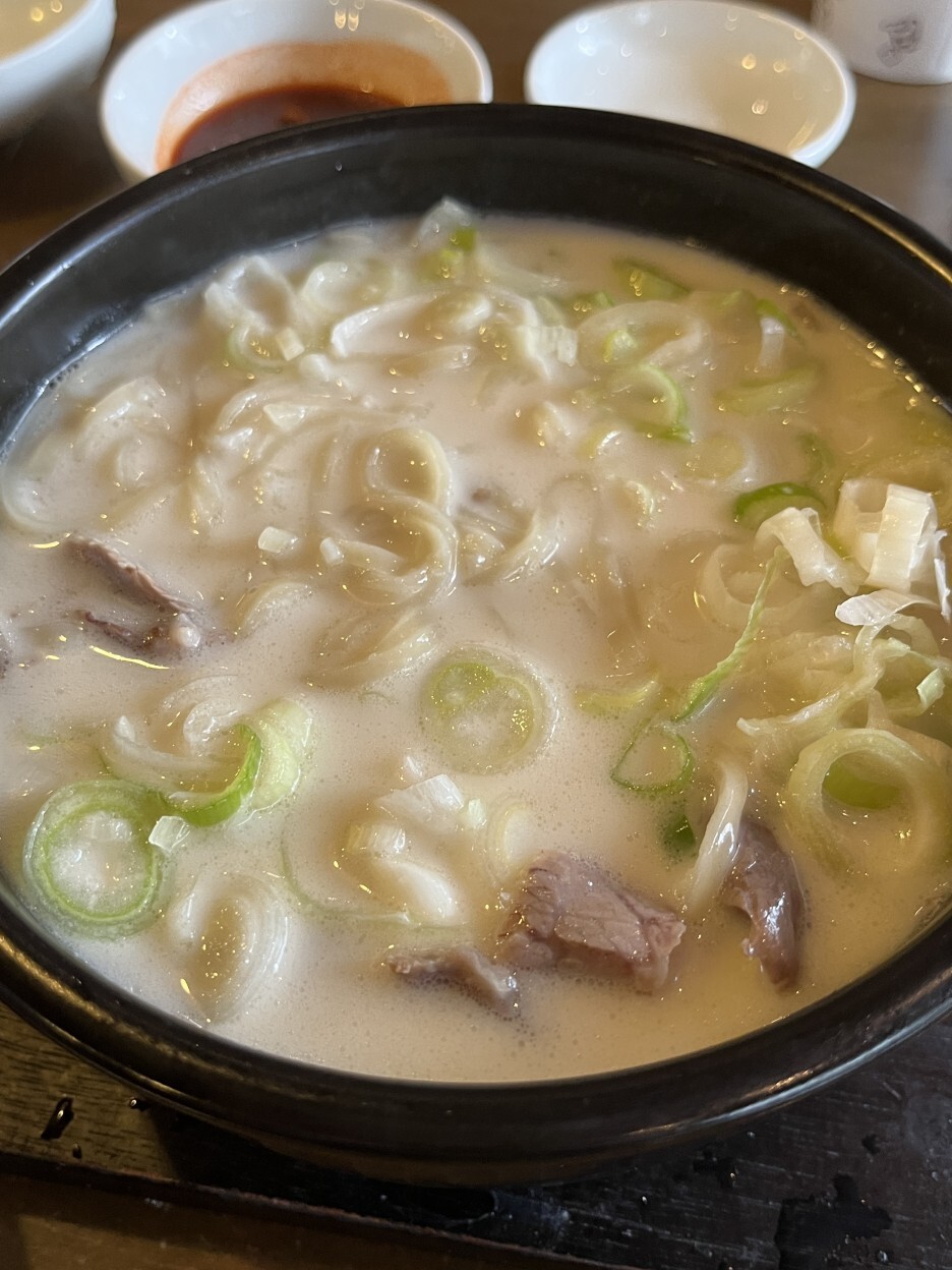 "거대곰탕"은 100% 사골을 우려낸 뽀얀 육수를 사용한다고 해요 :)